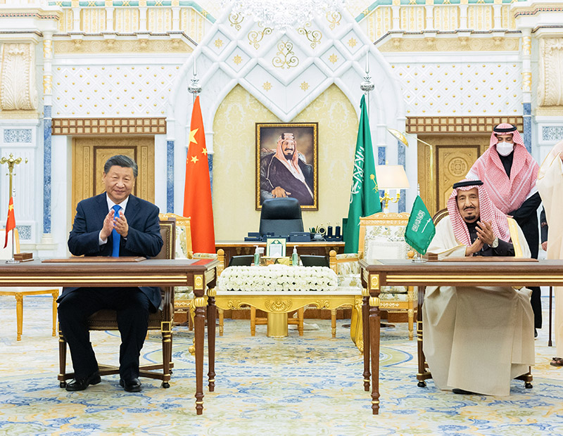 當(dāng)?shù)貢r(shí)間12月8日下午,國(guó)家主席習(xí)近平在利雅得王宮會(huì)見沙特國(guó)王薩勒曼。這是兩國(guó)元首親自簽署《中華人民共和國(guó)和沙特阿拉伯王國(guó)全面戰(zhàn)略伙伴關(guān)系協(xié)議》,同意每?jī)赡暝趦蓢?guó)輪流舉行一次元首會(huì)晤。新華社記者 黃敬文 攝