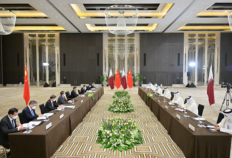 習近平指出,中方堅定支持卡方維護國家主權、安全、穩定,贊賞卡方在事關中國核心利益問題上給予中方寶貴支持。中方支持卡方推進“2030國家愿景”建設,愿同卡方擴大天然氣等傳統能源領域合作,拓展光伏、風能等可再生能源領域合作,提升兩國金融投資領域合作水平,歡迎卡方加大對華投資,愿積極促進雙方人員往來。阿拉伯世界是當今多極化世界中的一支重要獨立力量。中方贊賞卡方一貫支持和促進中阿和中海集體合作,愿同卡方一道,推動中阿和中海關系邁上新臺階。歡迎卡塔爾成為上海合作組織對話伙伴,愿同卡方就國際地區問題保持密切溝通。