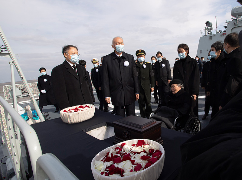 12月11日,遵照江澤民同志及其親屬的意愿,敬愛的江澤民同志的骨灰在長江入海口撒入大海。受黨中央委托,中共中央政治局常委、中央書記處書記蔡奇等領導同志和江澤民同志的夫人王冶坪等親屬護送骨灰撒放。新華社記者 李濤 攝