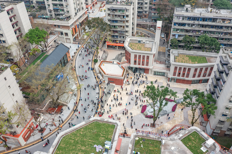 重慶市九龍坡區(qū)謝家灣街道民主村社區(qū),過(guò)去大量居民樓年久失修,環(huán)境臟亂。依托城市更新,如今這里成為幸福宜居之地。