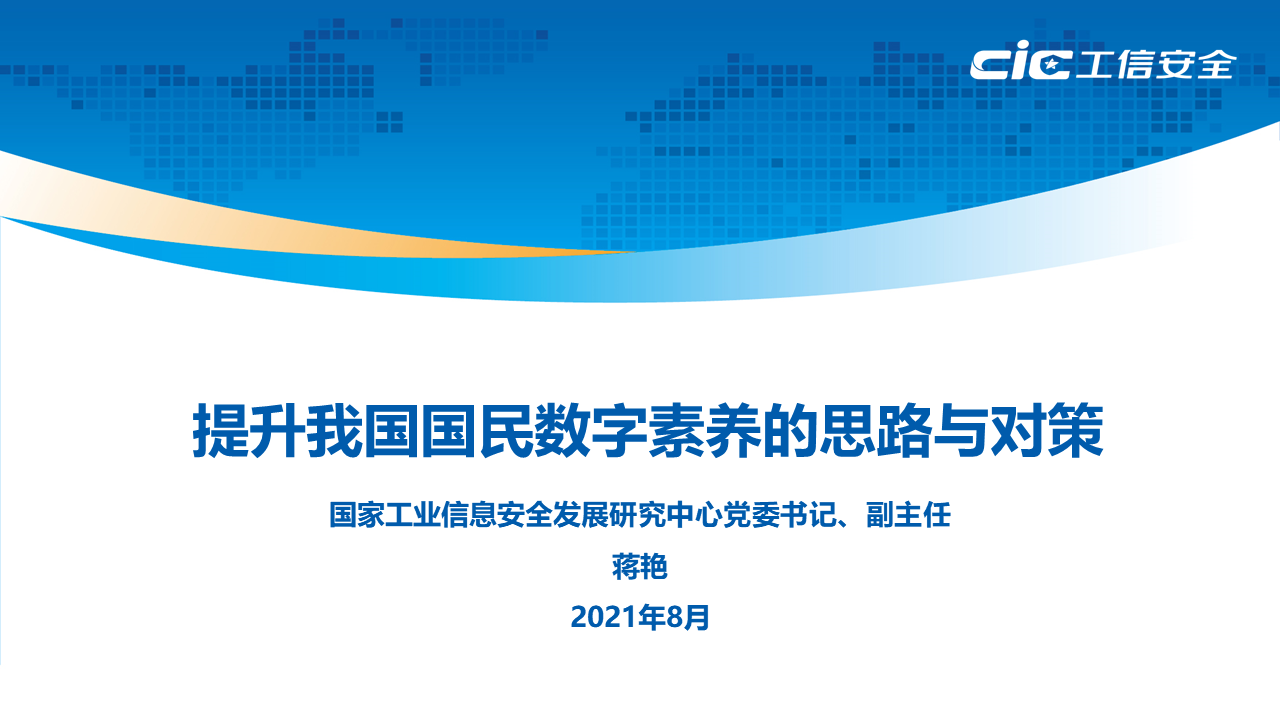8月20日,2021網上絲綢之路大會數字新基建與全民數字素養提升論壇在寧夏銀川市召開,國家工業信息安全發展研究中心黨委書記、副主任蔣艷受邀以線上方式參會,并就“提升我國國民數字素養的思路與對策”發表主旨演講。