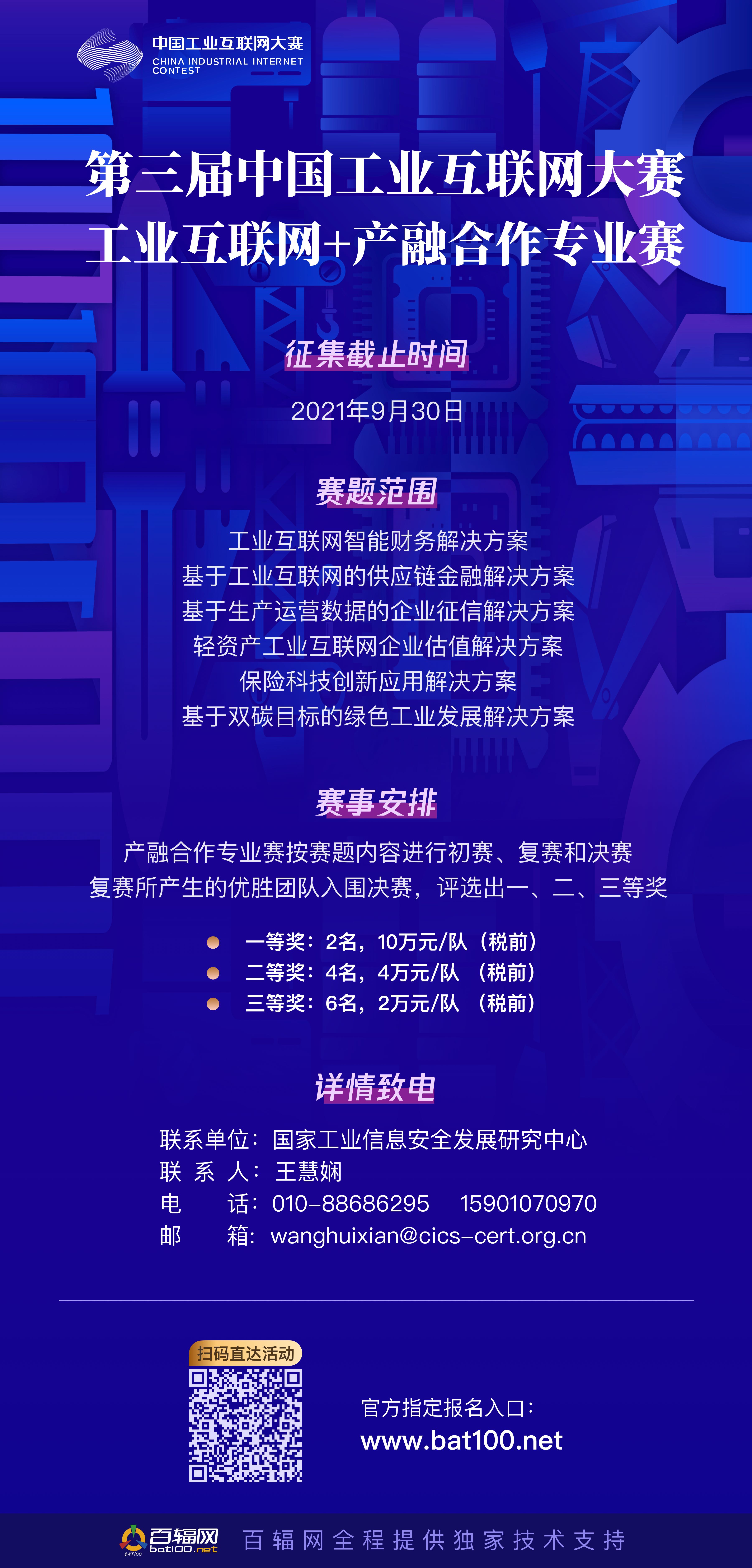產融合作專業賽重點征集工業互聯網智能財務、基于工業互聯網的供應鏈金融、基于生產運營數據的企業征信、輕資產工業互聯網企業估值、保險科技創新應用、基于雙碳目標的綠色工業發展六大賽題解決方案。賽事設置一、二、三等獎。報名時間截止至2021年9月30日。