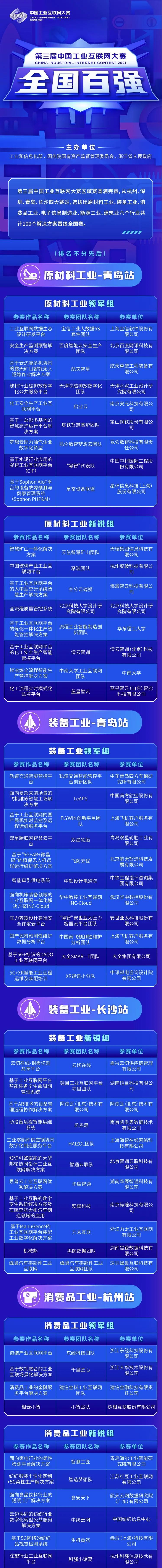 10月27日,第三屆中國工業互聯網大賽的參賽團隊經過激烈角逐,全國賽百強團隊從四大區域賽站決賽中脫穎而出。第三屆中國工業互聯網大賽由工業和信息化部、國務院國有資產監督管理委員會、浙江省人民政府主辦,國家工業信息安全發展研究中心、浙江省經濟和信息化廳、杭州市人民政府、國開投資基金管理有限責任公司承辦。自7月29日正式啟動和開通官網報名通道以來,在全國范圍內共征集優秀的工業互聯網創新解決方案1942個,創歷屆新高。通過線上初賽評審和線下決賽的激烈比拼,經由各大賽站專家評委專業細致的評審,最終四大賽站分別評選出賽站一、二、三等獎,并遴選出共計100個優秀解決方案晉級全國賽。