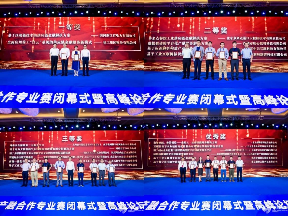 閉幕式上,參會領導和嘉賓為產融合作專業賽獲獎團隊頒發獲獎證書并合影留念。