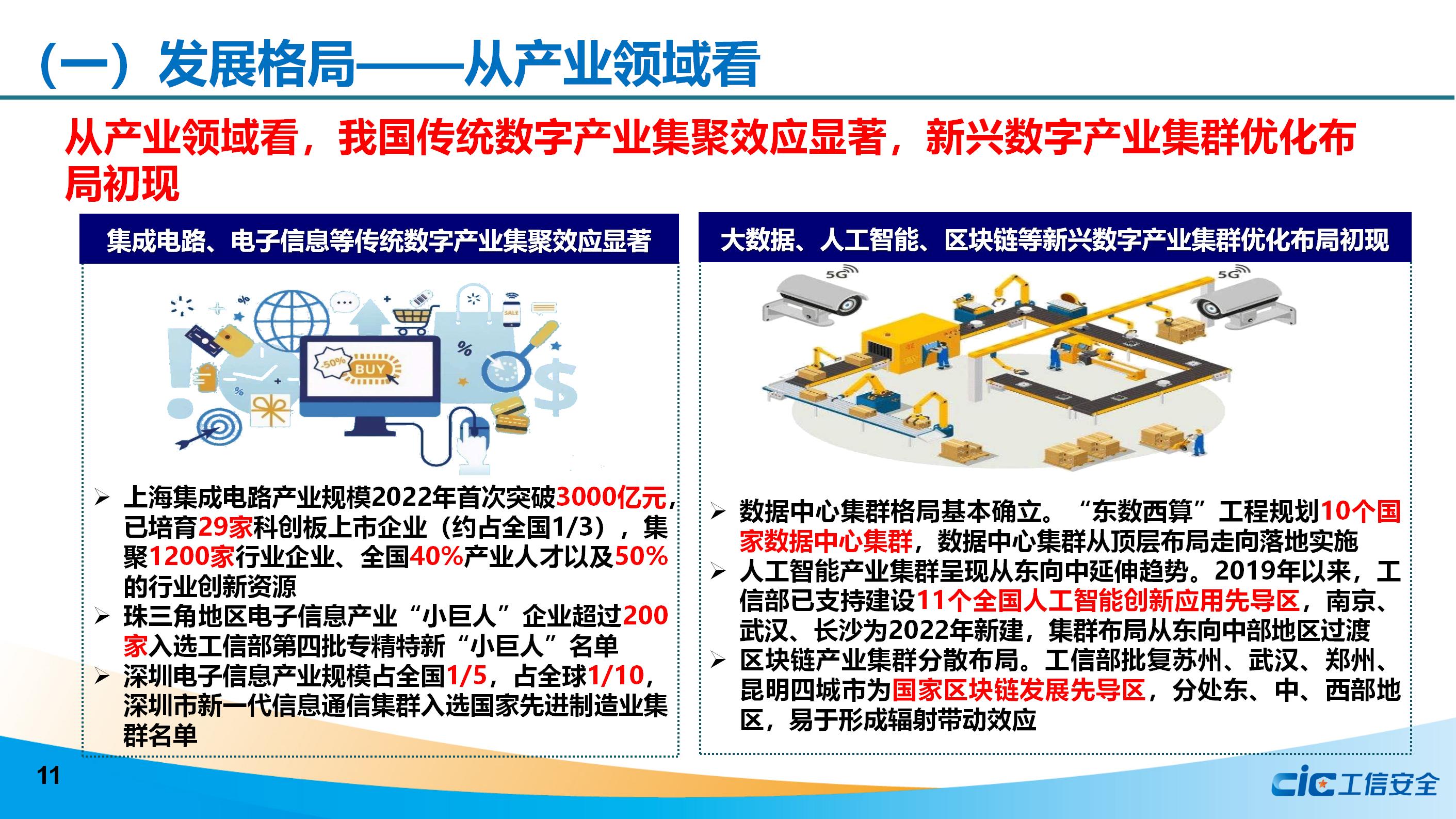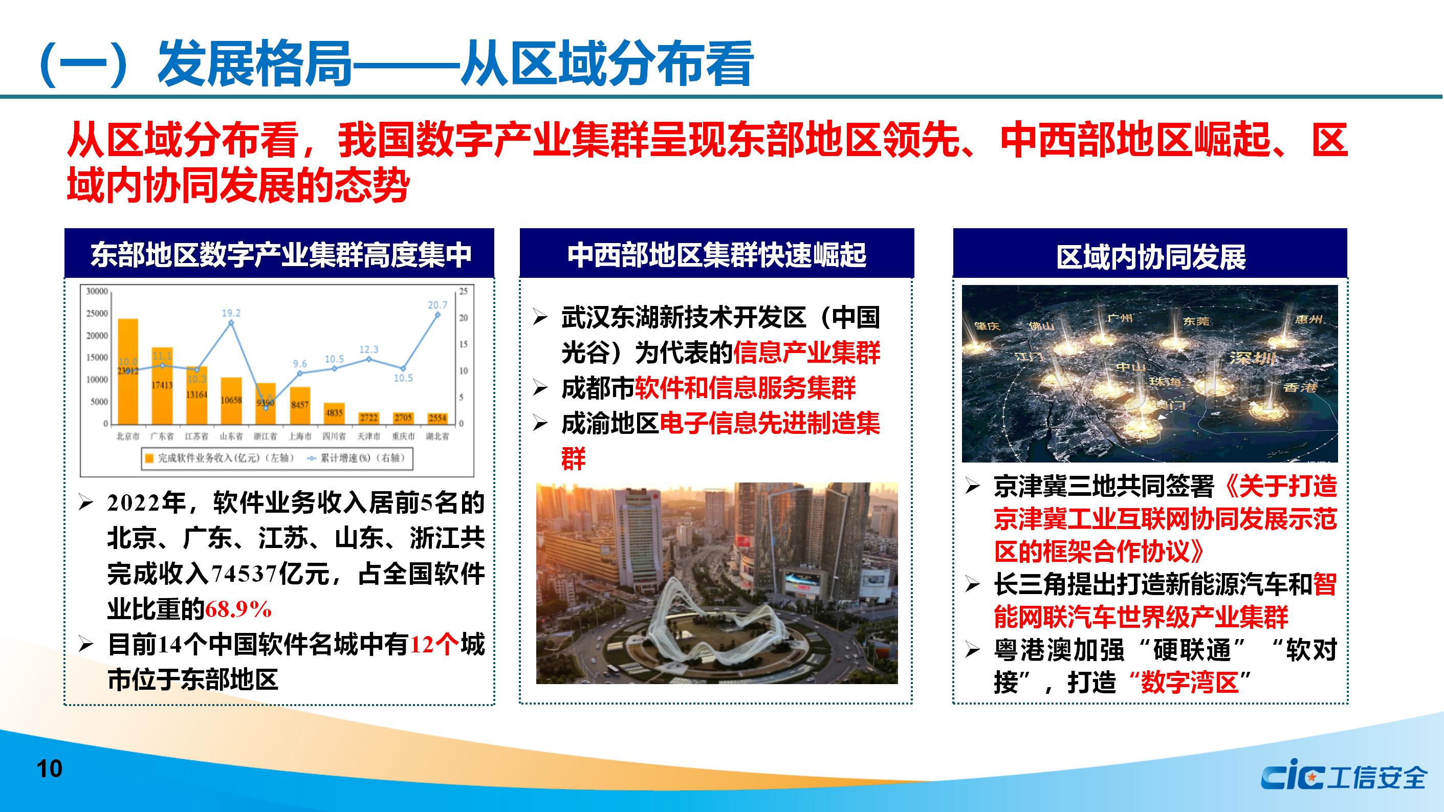 從區域分布看,我國數字產業集群呈現東部地區領先、中西部地區崛起、區域內協同發展的態勢;從產業領域看,我國傳統數字產業集聚效應顯著,新興數字產業集群優化布局初現;從發展階段看,我國數字產業集群建設進入央地協同、全面建設的新階段。