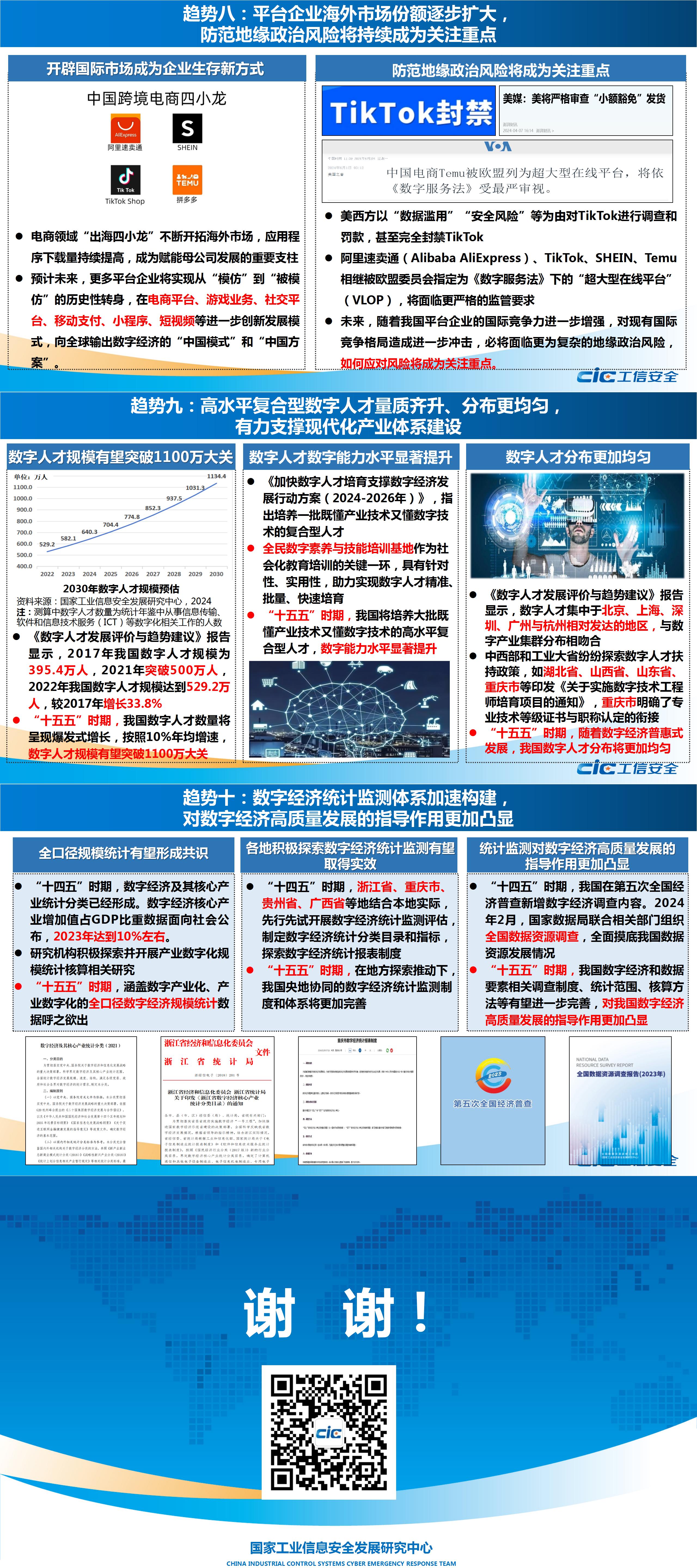 總體上看,“十五五”期間我國數字經濟將保持較快發展,呈現出能力更強、結構更優、規模更大的發展格局和數字化轉型、智能化升級、綠色化發展的發展趨勢,數字營商環境持續優化,高水平復合型數字人才量質齊升,數字經濟統計監測體系加速構建,將為發展新質生產力、推進新型工業化和建設現代產業體系提供廣闊的市場空間、豐富的機會場景和優渥的創新土壤。