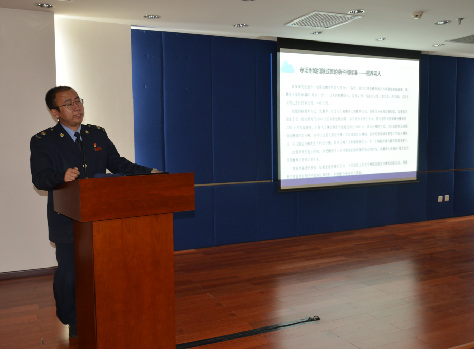 為使全體職工更加準確地掌握個人所得稅專項附加扣除有關(guān)政策,做好中心個人所得稅專項附加扣除信息采集工作,2019年1月10日,財務(wù)處特邀石景山區(qū)稅務(wù)局第二稅務(wù)所劉蕓副所長來中心對個人所得稅法及實施條例舉辦專題培訓。此次培訓面向中心全體職工,各部門近150人參加了培訓。