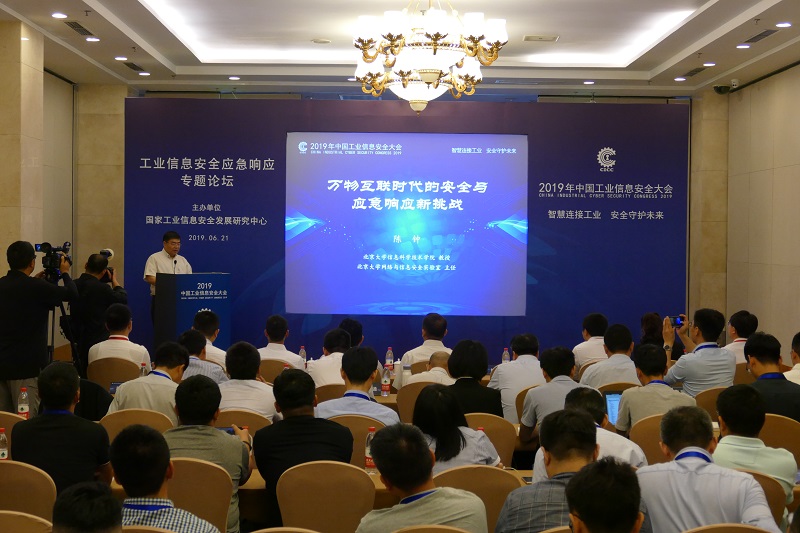 在主題報告中,陳鐘教授以及啟明星辰、天融信、烽臺科技、天地和興、恒安嘉新和江蘇博智等六名專家圍繞工業信息安全應急領域前沿技術、威脅應對策略和人才培養等主題同與會人員分享了相關實踐經驗和典型案例。