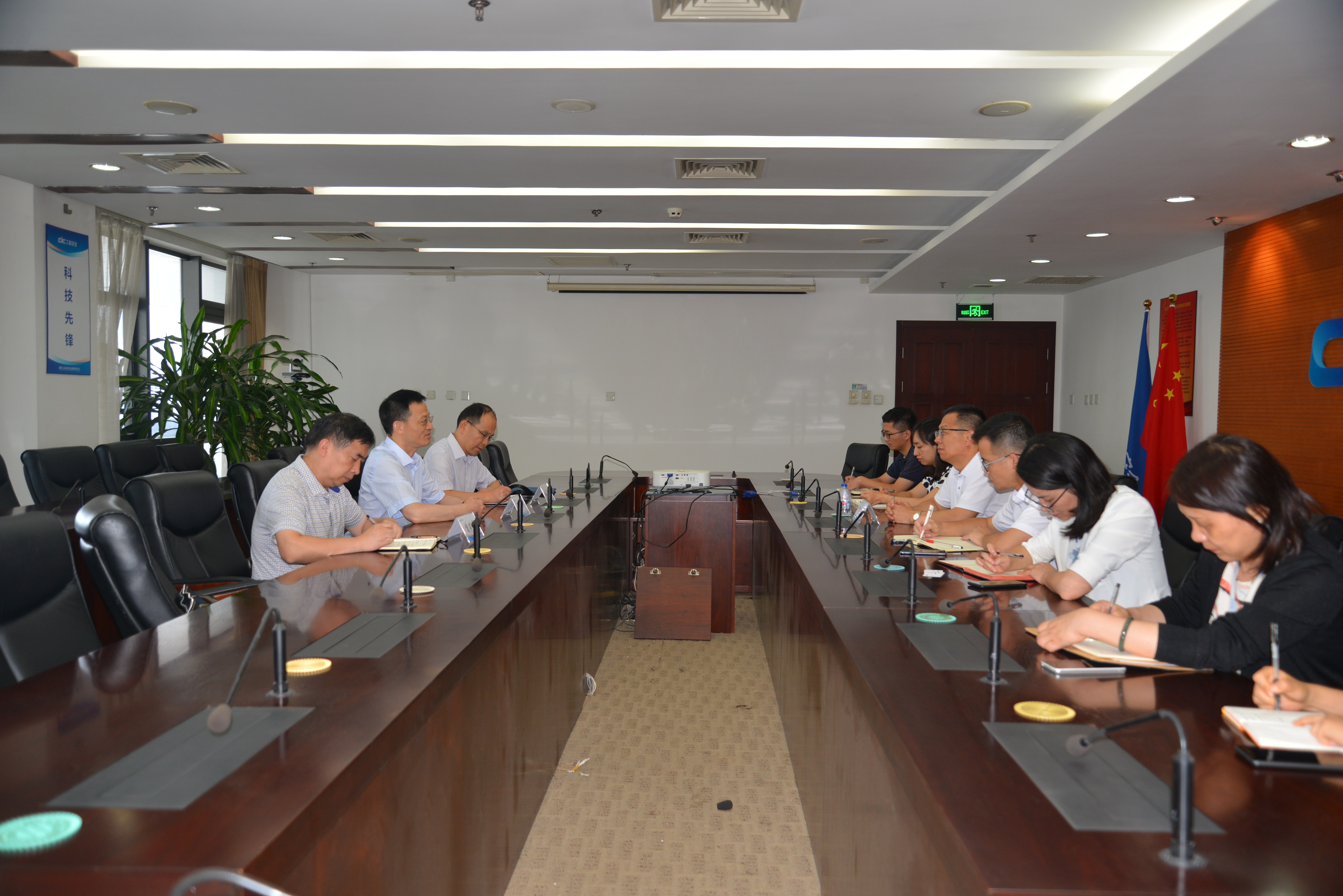 2019年7月26日上午,湖北省經(jīng)濟和信息化廳廳長王祺揚一行3人到中心開展調(diào)研,先后參觀了中心相關(guān)實驗室,并與中心就省級工控系統(tǒng)態(tài)勢感知平臺建設(shè)、加強部直屬單位與地方工信管理部門合作等進行了座談交流。