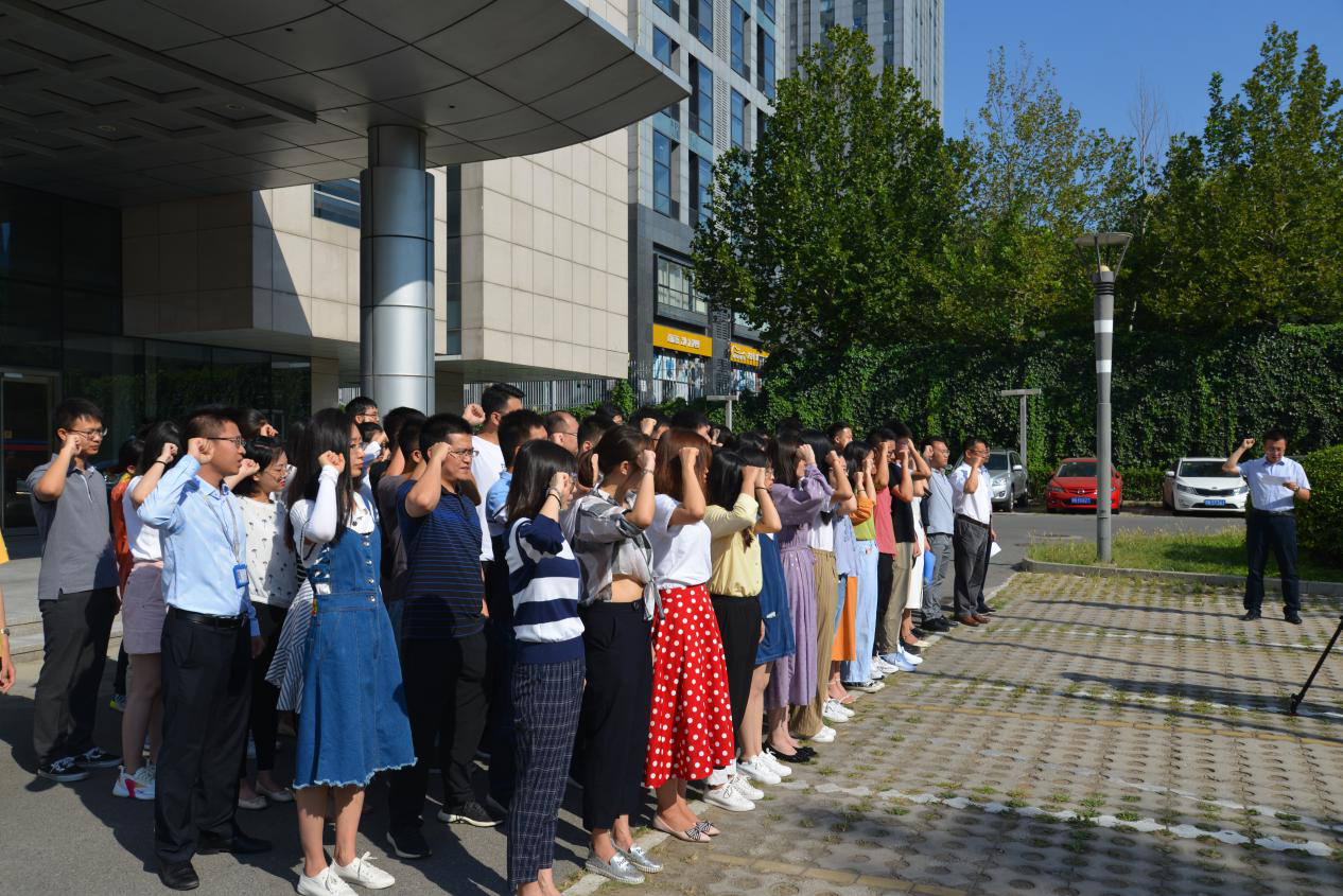 首先,大家集體列隊舉行了升國旗儀式。隨著國歌的奏響,大家齊聲高唱,注目著鮮艷的五星紅旗在朝陽中冉冉升起,愛國之情、奮斗之心油然而生。隨后,團委副書記郝江文同志帶領大家一起重溫了入團誓詞,大家再次感受到了當年的感動與榮耀。團員青年代表楊梓濤、馬冬雪、江鴻震圍繞學習貫徹習近平總書記在紀念五四運動100周年大會上的重要講話精神,結合“不忘初心、牢記使命”主題教育,結合身邊的熱點事件、工作經歷講述了自己的愛國之情和與祖國共奮進的決心,展現了當代青年與祖國同呼吸、與時代共奮進的愛國主義情懷和昂揚精神風貌。