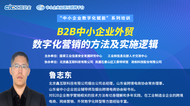 5月25日,由國家工業(yè)信息安全發(fā)展研究中心聯(lián)合工業(yè)和信息化部人才交流中心推出的“中小企業(yè)數(shù)字化賦能”系列直播第六期“B2B中小企業(yè)外貿(mào)數(shù)字化營銷的方法及實施邏輯”圓滿落幕。課上,北京鑫互聯(lián)科技有限公司煙臺公司總經(jīng)理魯志東先生以某機(jī)械工程生產(chǎn)企業(yè)為案例,為我們詳細(xì)講述了外貿(mào)數(shù)字化營銷的方法及實施邏輯。