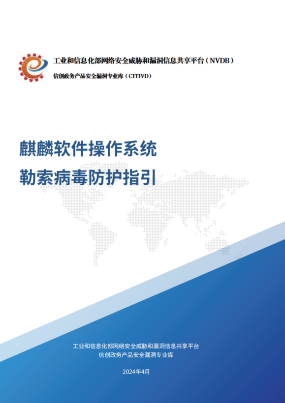 4月23日,由工業和信息化部網絡安全威脅和漏洞信息共享平臺信創政務產品安全漏洞專業庫(以下簡稱“信創安全漏洞庫”)牽頭編制的《麒麟軟件操作系統勒索病毒防護指引》正式發布。 該指引介紹了勒索病毒的攻擊原理和攻擊路徑,為用戶安全使用麒麟軟件桌面操作系統和服務器操作系統提供了具體參考。 《麒麟軟件操作系統勒索病毒防護指引》由信創安全漏洞庫牽頭,與國內9家企事業單位聯合編制,旨在應對日益嚴峻的網絡空間安全態勢,提升信創產業網絡安全防護意識和安全防護水平,構建良好信創安全生態環境。 下一步,信創安全漏洞庫將繼續開展信息收集、風險研判、處置通報等相關工作,提供信創產品安全漏洞緩解措施及修復方案,進一步提升我國信創產品安全防護能力,助力構建良好信創安全生態環境。 點擊“閱讀原文”下載附件