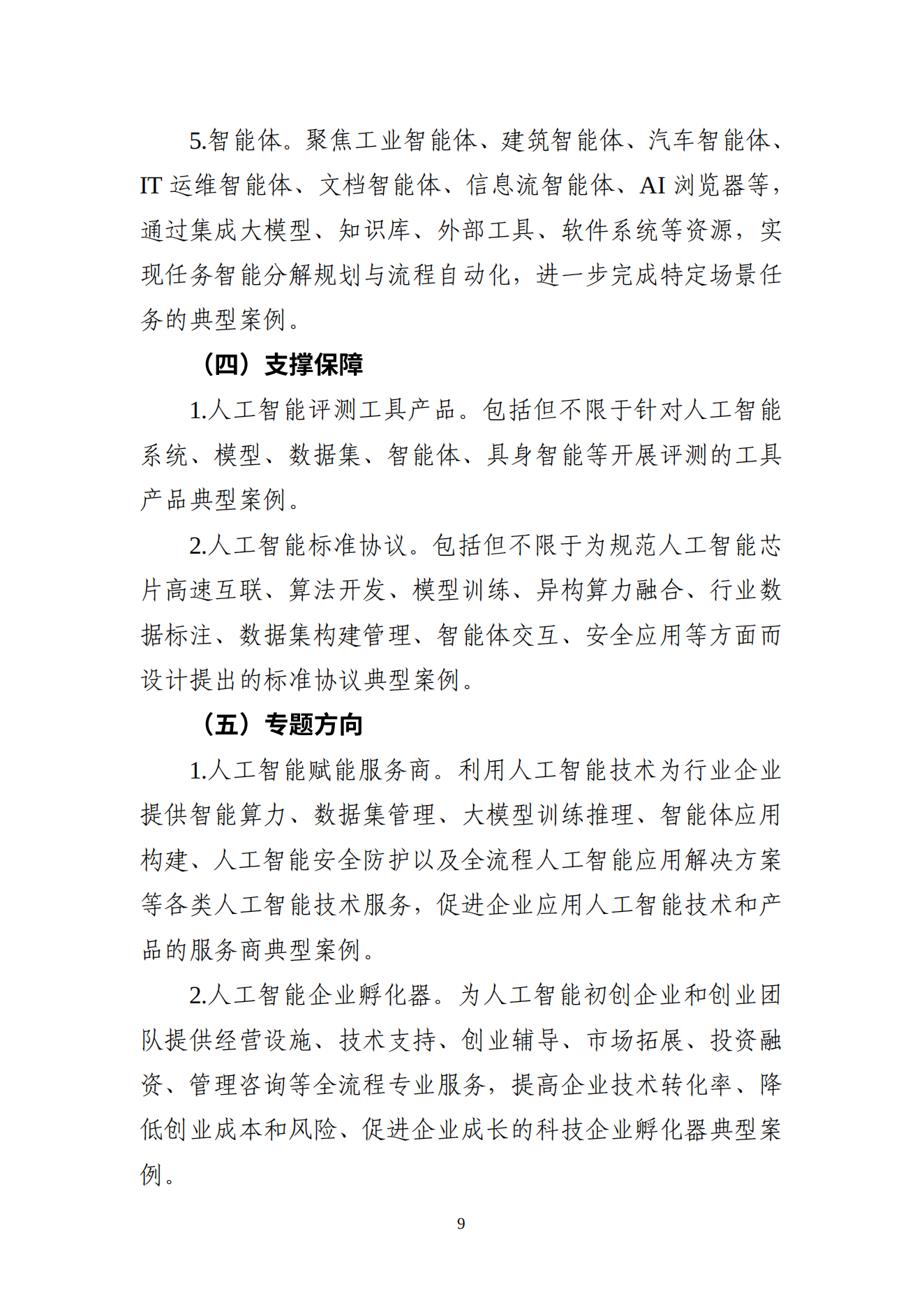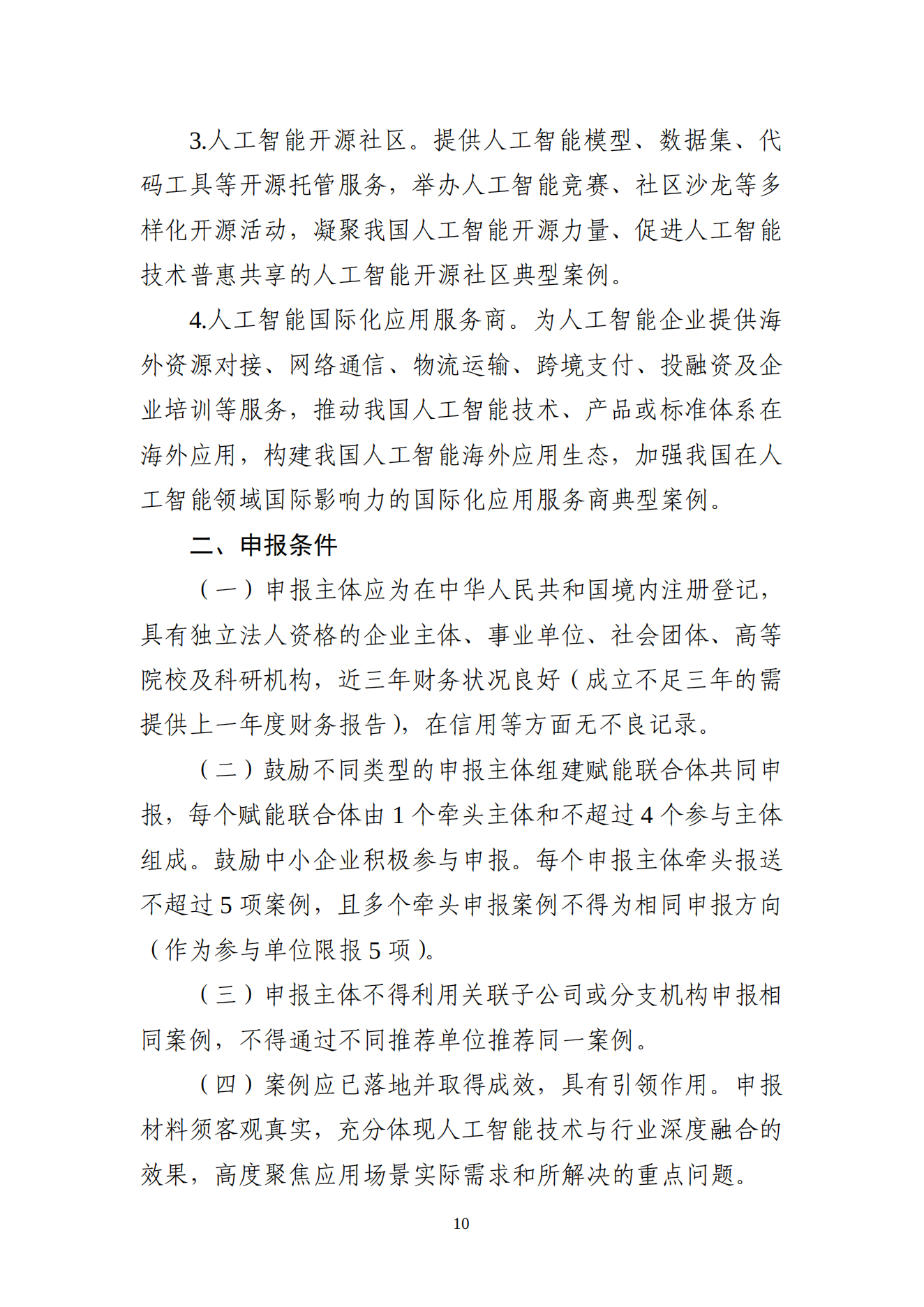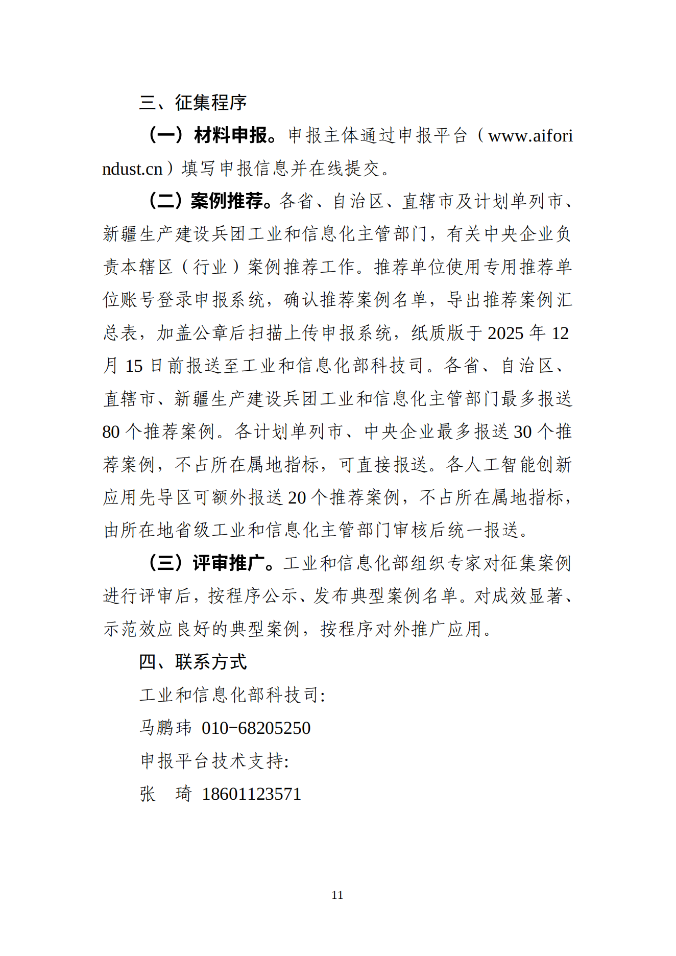近日,工業(yè)和信息化部辦公廳發(fā)布通知,集中組織開(kāi)展14類(lèi)典型案例征集工作,其中人工智能作為單獨(dú)一類(lèi)設(shè)立,圍繞技術(shù)底座、行業(yè)賦能、產(chǎn)品應(yīng)用、支撐保障4大方向進(jìn)行征集,另設(shè)人工智能賦能服務(wù)商、人工智能企業(yè)孵化器、人工智能開(kāi)源社區(qū)以及人工智能?chē)?guó)際化應(yīng)用服務(wù)商等4個(gè)專(zhuān)題方向。征集對(duì)象面向各類(lèi)企業(yè)主體、事業(yè)單位、社會(huì)團(tuán)體、高等院校及科研機(jī)構(gòu),可通過(guò)在線申報(bào)系統(tǒng)(https://www.aiforindust.cn)提交。申報(bào)案例將由各地工業(yè)和信息化主管部門(mén)和有關(guān)中央企業(yè)予以推薦并報(bào)送至工業(yè)和信息化部。工業(yè)和信息化部將組織專(zhuān)家對(duì)征集案例進(jìn)行評(píng)審后,按程序公示、發(fā)布典型案例名單。