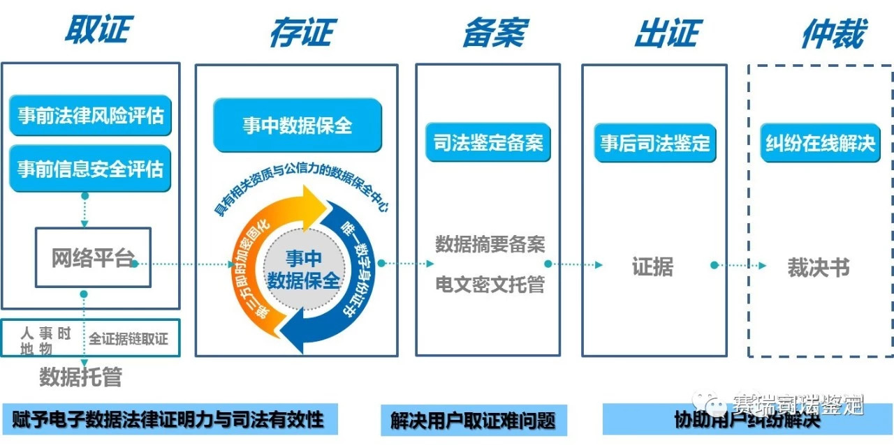 互聯網數據保全鏈著力解決互聯網犯罪與糾紛取證、鑒定難的問題,提供科學、便捷、高效的案件偵查、糾紛處理、行業監管輔助服務,可以在信息安全防護、網貸、知識產權保護、消費金融等領域提供可靠的一站式電子數據保全方案。
