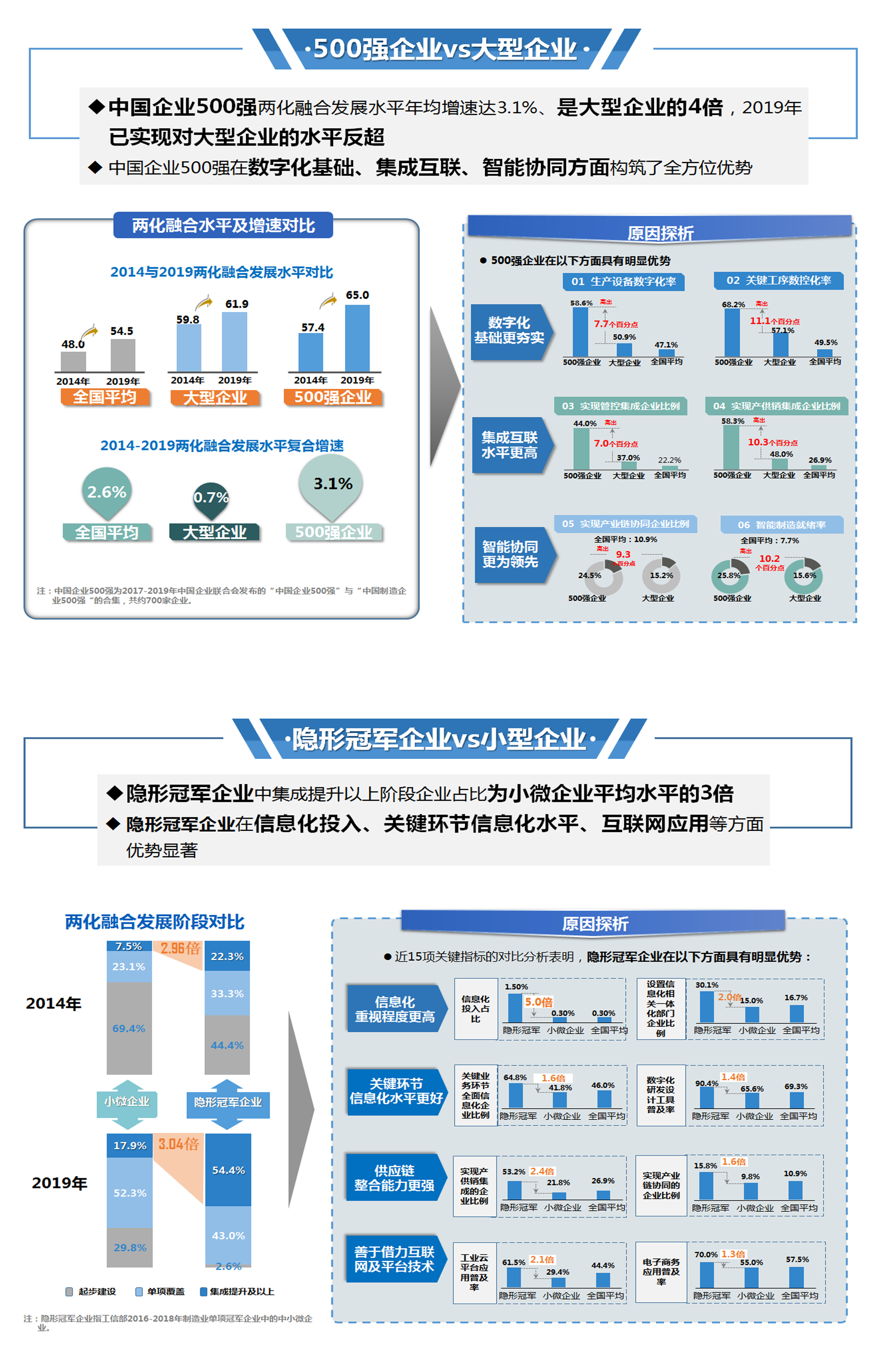 2. 企業轉型:作為兩化融合的主體,各類企業(大型企業、中小微企業、國有企業、民營企業、500強企業、隱形冠軍企業等)的兩化融合發展具有哪些特征和亮點?