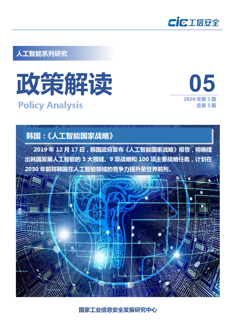 為更好地開展人工智能跟蹤研究工作,自2020年2月起,國家工信安全中心人工智能所在《AI資訊》的基礎上,推出人工智能系列研究產品《政策解讀》及《運行分析》。《政策解讀》主要圍繞各國人工智能的關鍵舉措、政策文件及重要動態,從事件背景、主要內容、社會反響等角度開展解讀分析。