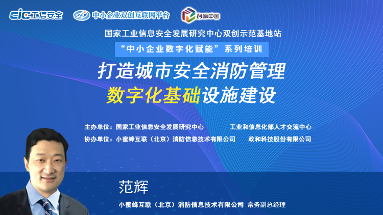 6月22日,由國家工業信息安全發展研究中心聯合工業和信息化部人才交流中心推出的“中小企業數字化賦能”系列直播第十期暨2020“創響中國”國家工業信息安全發展研究中心雙創示范基地站系列活動“打造城市安全消防管理數字化基礎設施建設”圓滿落幕。在課上,小蜜蜂互聯(北京)消防信息技術有限公司常務副總經理范輝博士從城市消防安全管理的數字化基礎設施包含哪些內容,消防部門、消防技術服務機構、社會單位如何打造自己的數字化基礎設施,新基建背景下,如何創新城市消防安全管理模式進行了精彩分享。