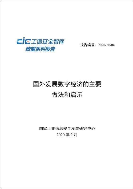 工信安全智庫丨瞭望系列報告:《國外發展數字經濟的主要做法和啟示》