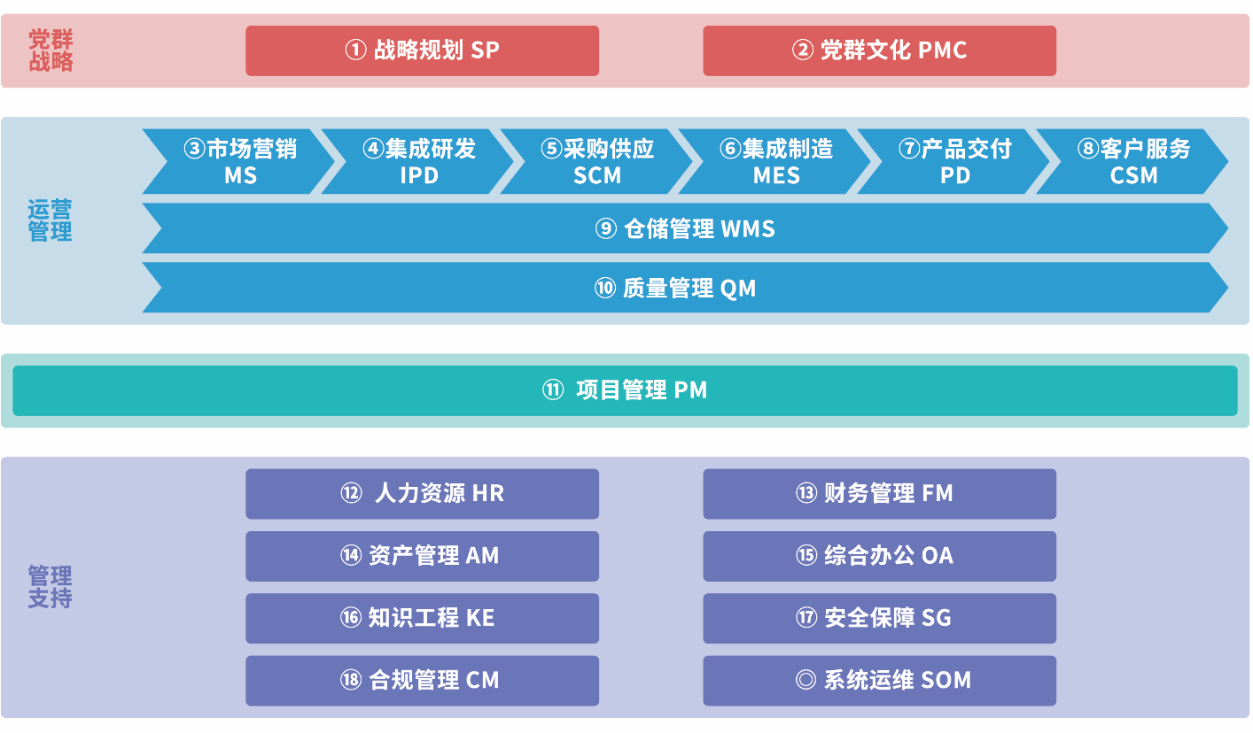 ZOS按照黨群戰(zhàn)略、運(yùn)營(yíng)管理、管理支持三個(gè)類(lèi)別劃分為18個(gè)業(yè)務(wù)域,可統(tǒng)一部署應(yīng)用,也可分模塊部署應(yīng)用。