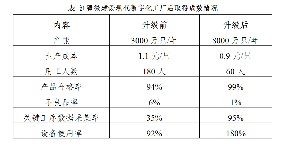 一是智能制造取得顯著成效。江馨微電機建設現代數字化工廠,可實現企業智能制造規范化運營,與國家多產業深度融合發展。該項目的實施,將填補自治區VCM產業的空白,推動國產代替進口轉型升級速度,促進民族工業的發展,打破VCM行業被國外TDK、阿爾卑斯、三星電機等廠家壟斷的局面。目前外資企業的市場占有率已經從100%降至45%左右;江馨微產品的國際市場份額將實現由5%提升至15%以上。具體成效如下表: