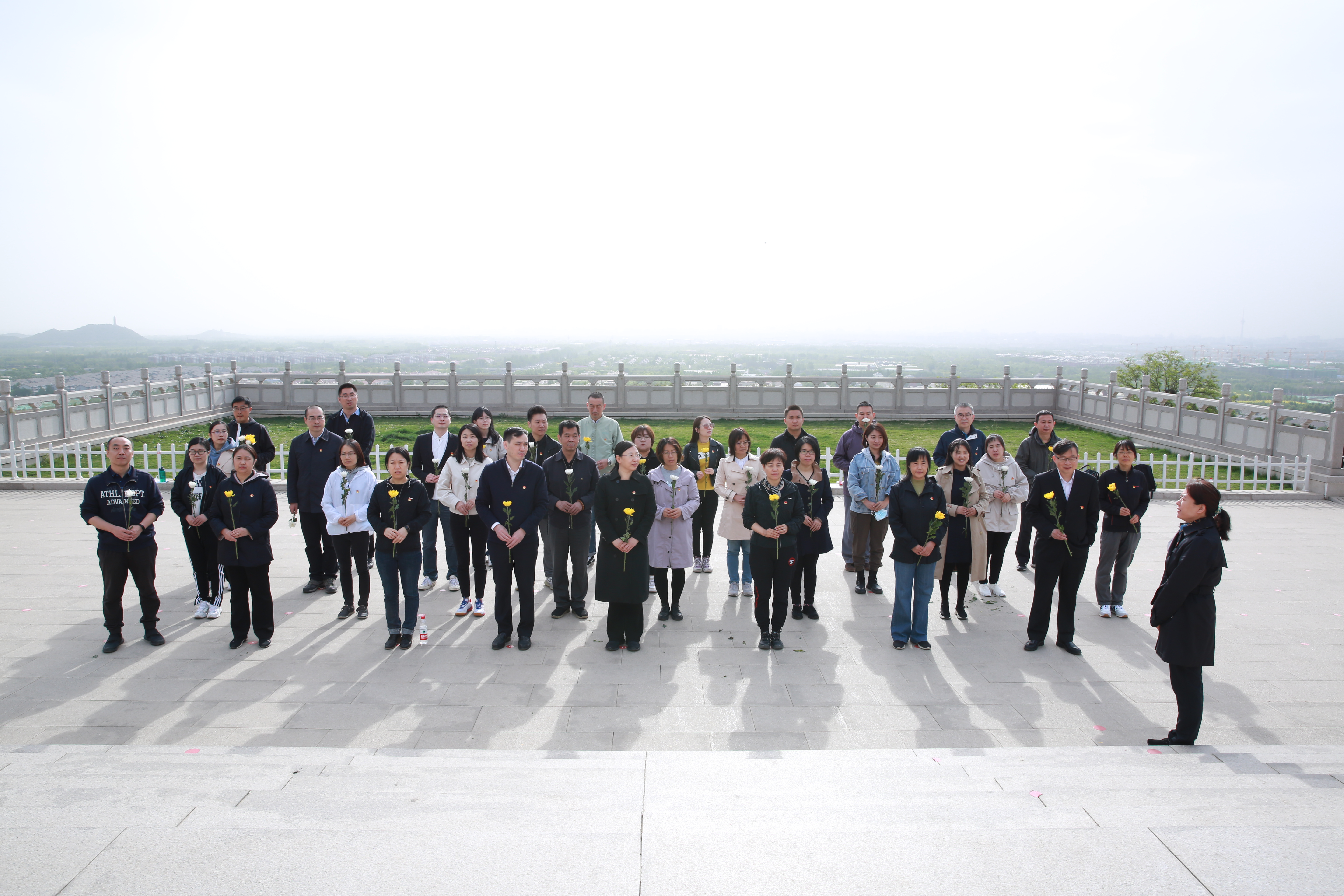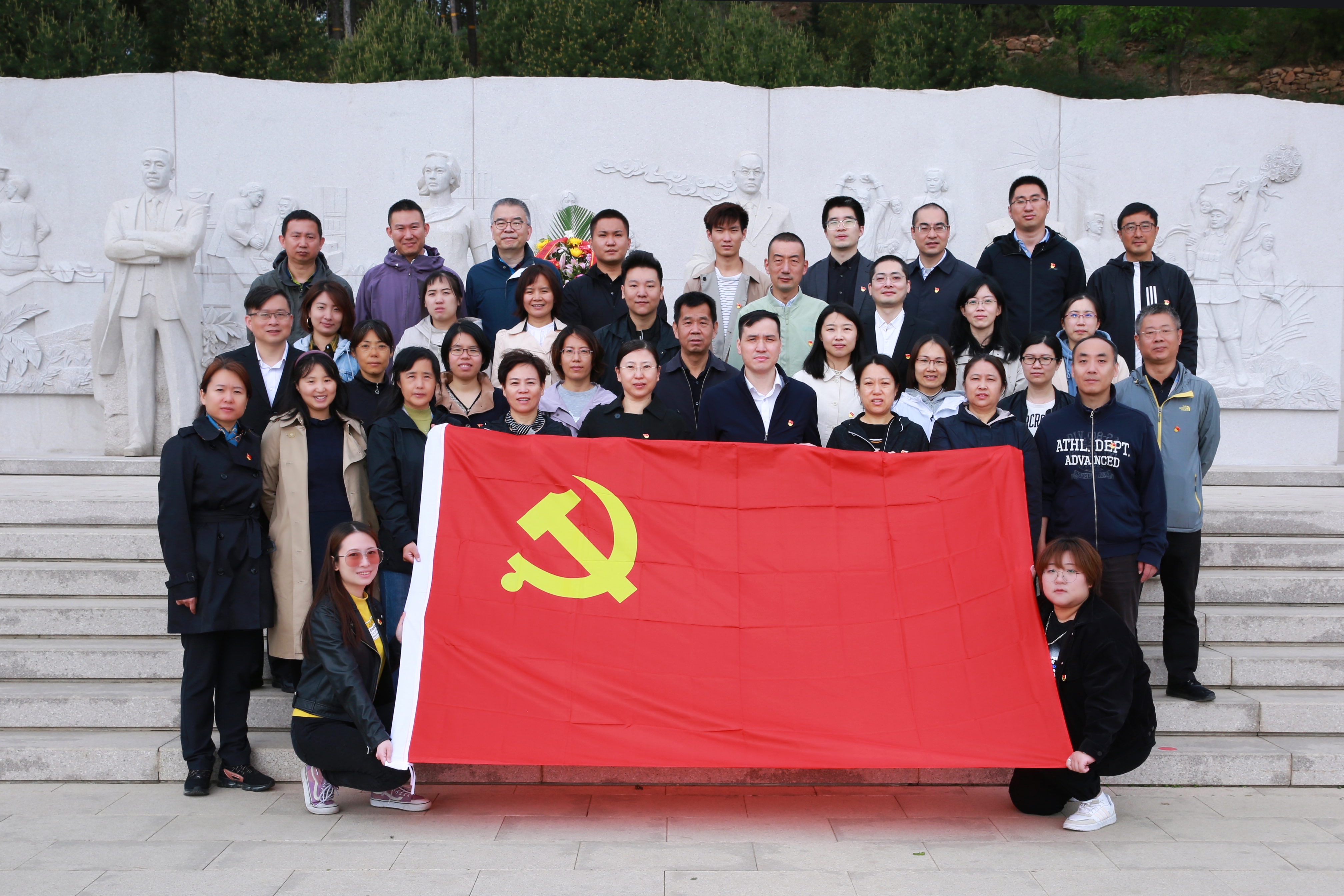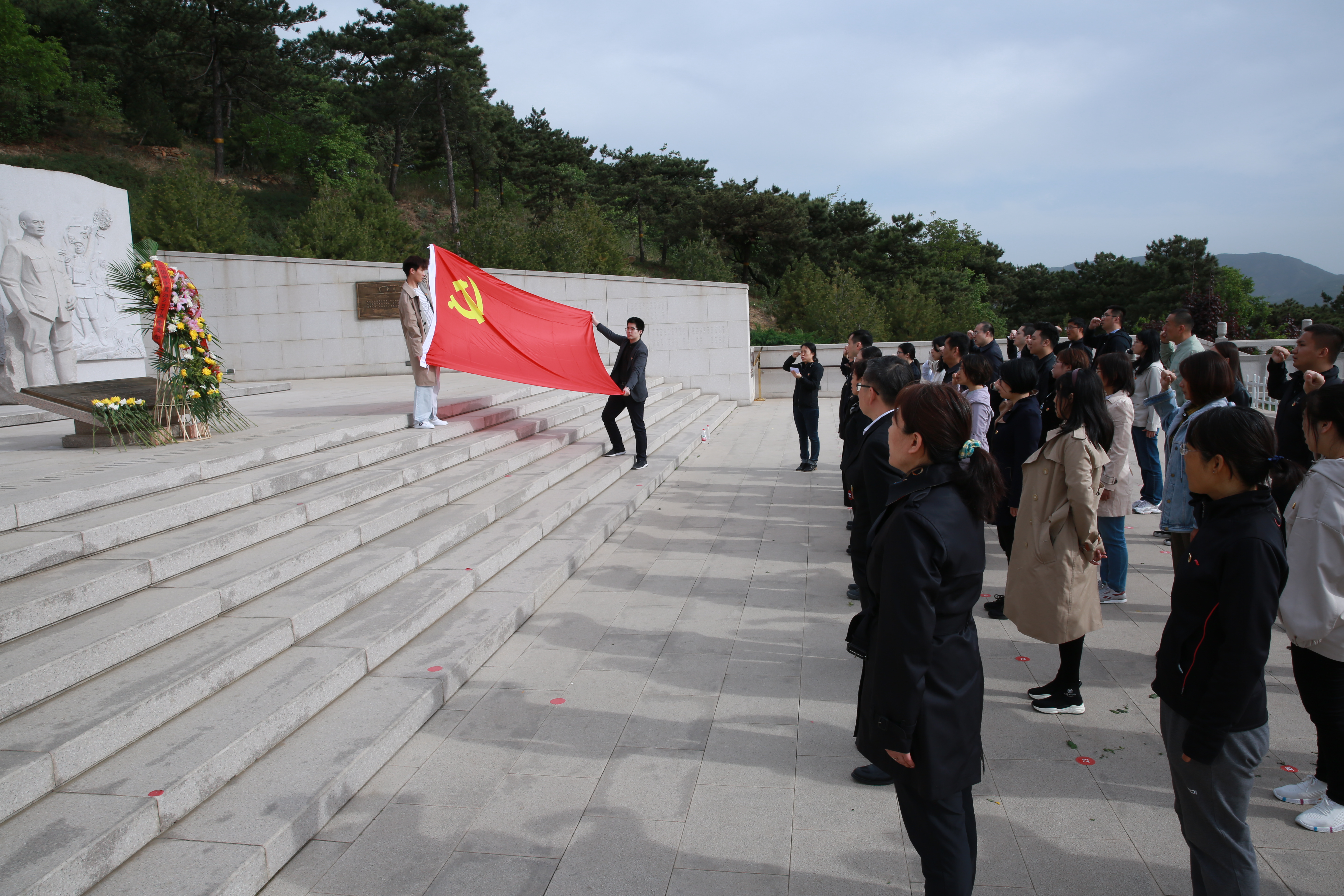 行業管理處黨支部書記陳征華介紹了本次聯合主題黨日的活動目的及意義。行業管理處黨支部組織委員王磊介紹了這里承載的歷史。北京西山無名英雄紀念廣場是為了紀念20世紀50年代犧牲于臺灣的我黨隱蔽戰線的無名英雄,一層廣場前的巨幅景觀墻中有毛澤東主席題詩:“驚濤拍孤島,碧波映天曉。虎穴藏忠魂,曙光迎來早。”