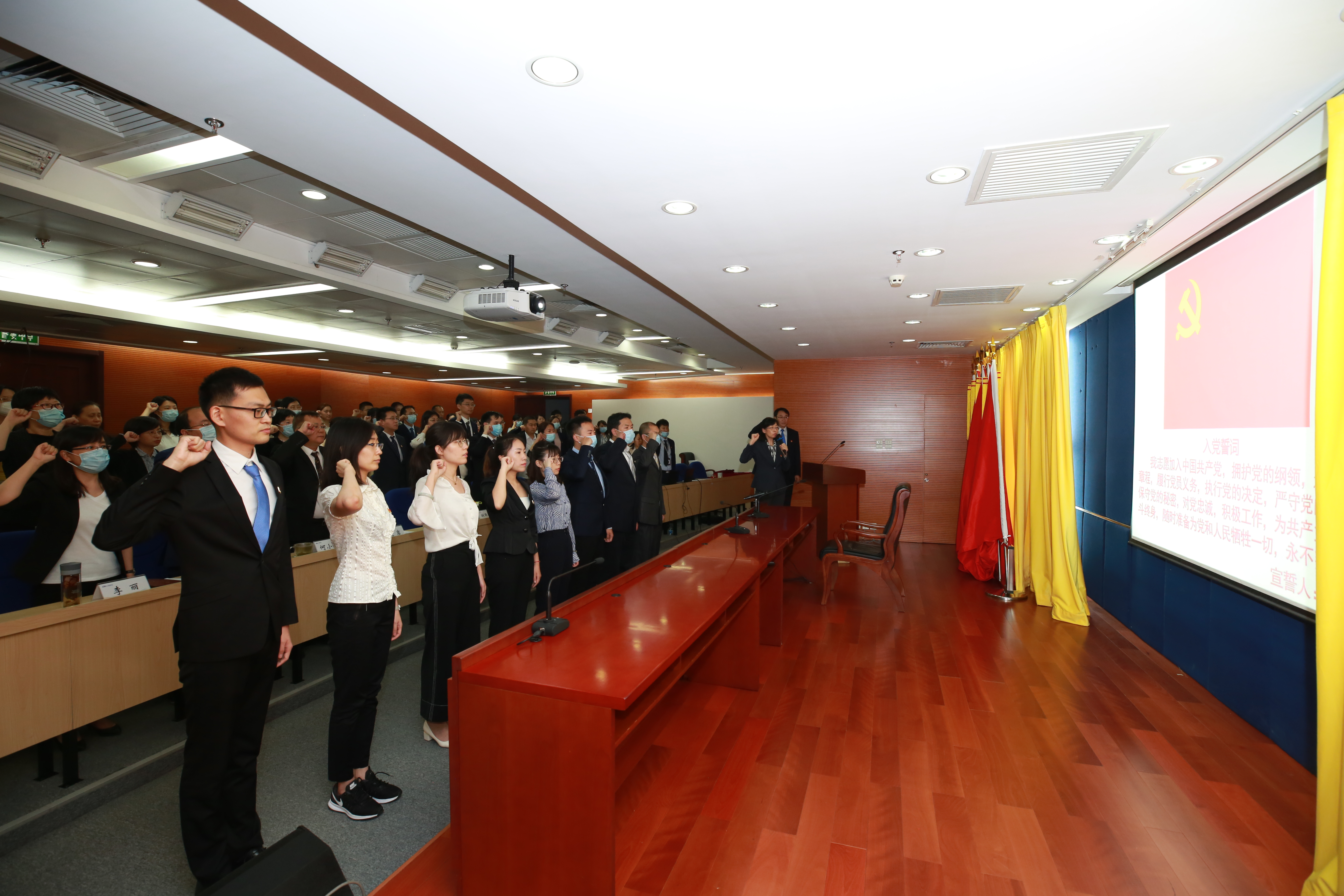 大會舉行了莊嚴的宣誓儀式。蔣艷同志領誓,帶領新發展黨員面對黨旗進行入黨宣誓,其他與會黨員重溫入黨誓詞,進一步堅定了永遠忠于黨、永遠跟黨走的信心和決心。