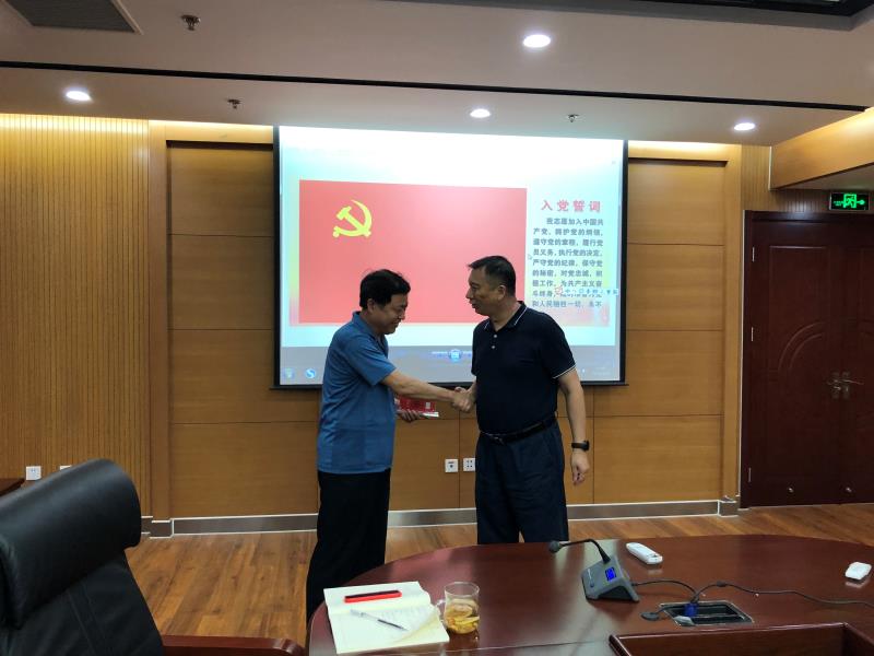 緊接著黨支部舉行黨員先鋒崗和黨員示范崗授牌儀式,由程曉明同志為支部黨員授牌。授予2018-2019年度優秀共產黨員祝會超同志黨員先鋒崗,授予其他黨員同志黨員示范崗。通過授牌更加增強了黨員和入黨積極分子的責任感和使命感,更好地為中心的改革發展做好管理服務和保障。