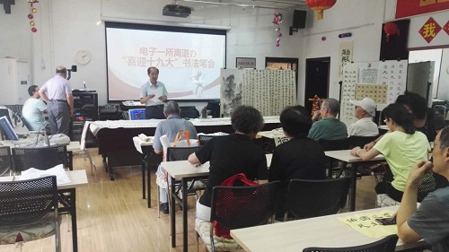 中心聘請了中國硬筆書法協(xié)會馬禎貴老師講解如何鑒賞書法作品;邀請了年近八旬資深書法愛好者黃史堅介紹了其書法作品的創(chuàng)作思路。活動中,十余位老年書法大學(xué)學(xué)員分別展示了自己書法作品,馬老師對作品逐一進行了點評。