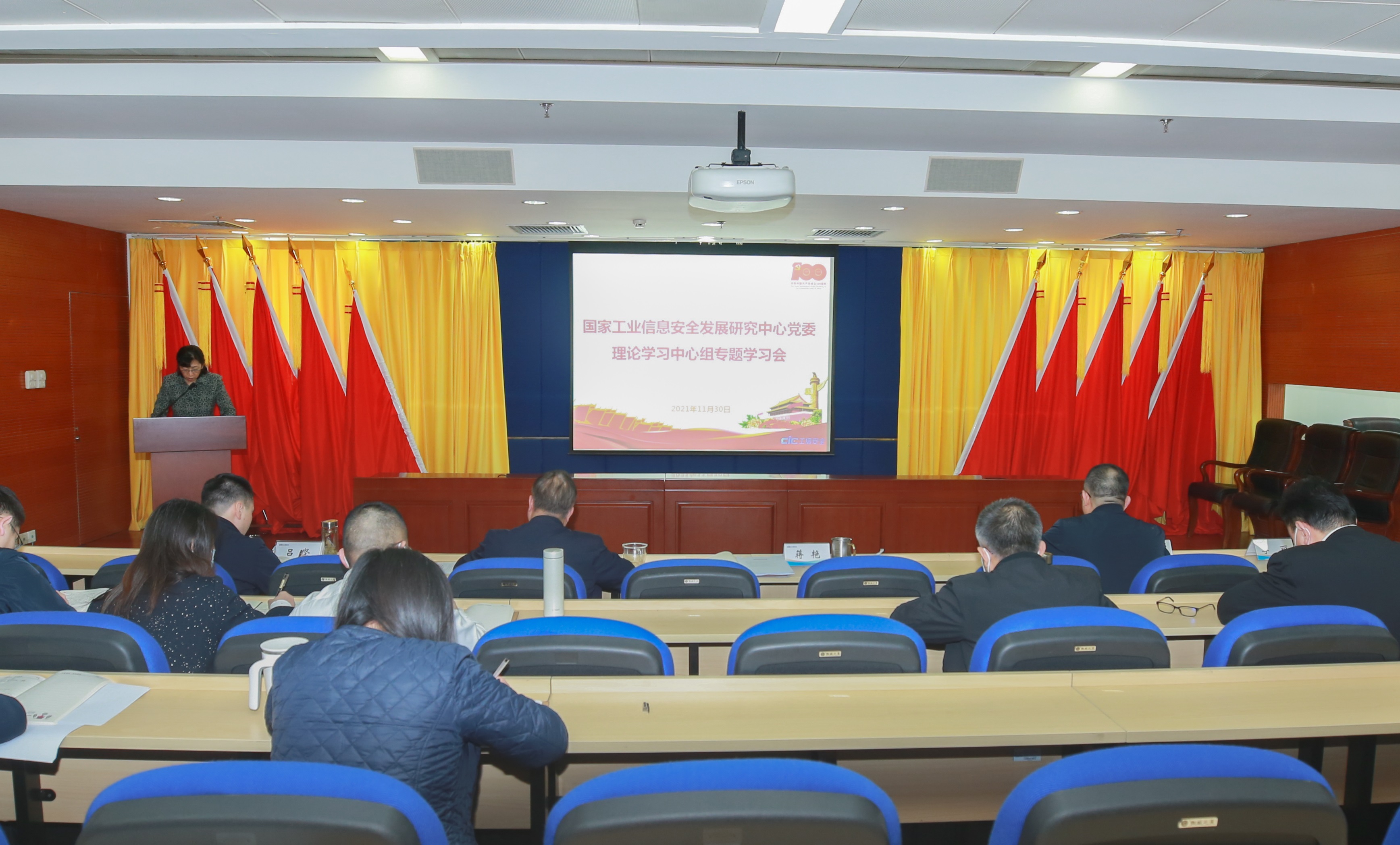 2021年11月30日,國家工業信息安全發展研究中心(以下簡稱中心)黨委召開理論學習中心組專題學習會,深入交流黨的十九屆六中全會精神學習心得體會。中心領導班子成員、各黨支部書記、部門主要負責人、青年理論學習小組組長等70余人現場參會,其他黨支部委員、中層干部、青年理論學習小組干事通過OA系統直播參會。