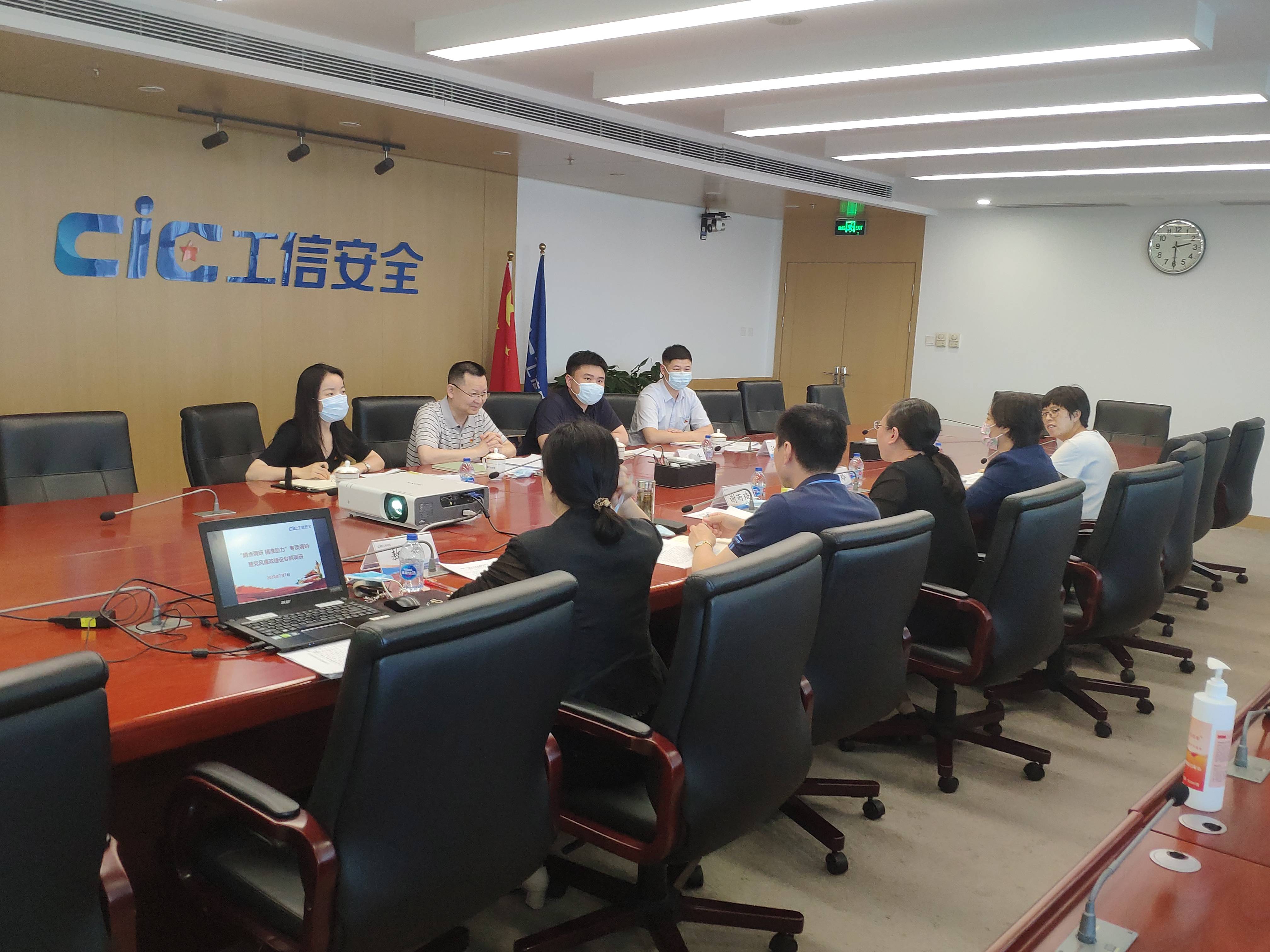 2022年7月7日,工業和信息化部直屬機關黨委副書記、紀委書記胡陽輝同志帶領調研組到我中心開展“蹲點調研 精準助力”專項調研暨黨風廉政建設專題調研。中心紀委書記謝雨琦匯報了中心黨建情況,黨委副書記呂堅,黨群工作處、紀檢審計處有關負責同志,支部委員代表參加會議。