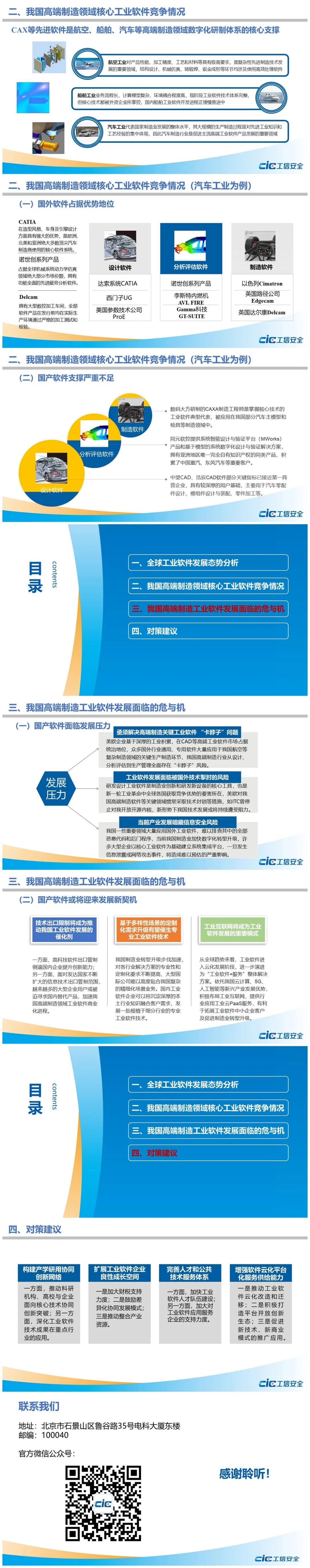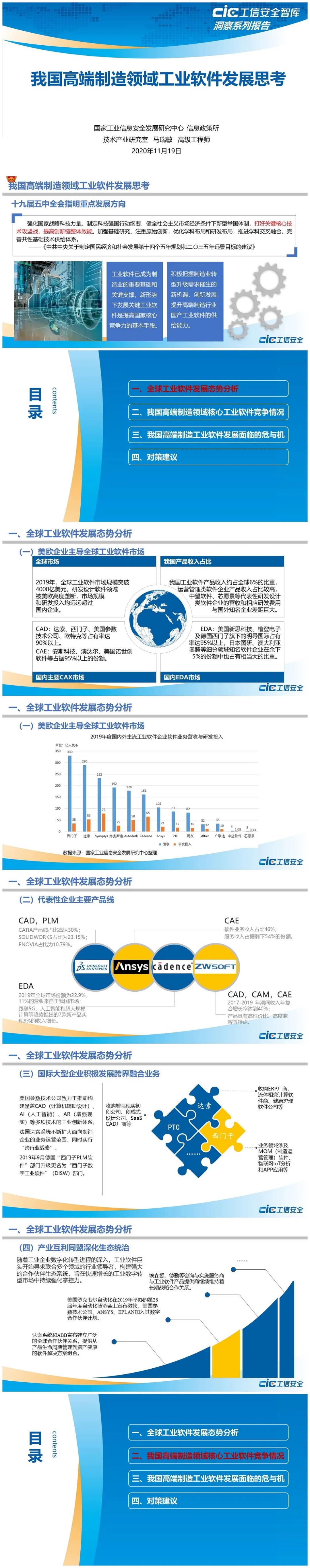 11月19日,“工信安全智庫”系列報(bào)告在線發(fā)布活動(dòng)第七場(chǎng)——“信息技術(shù)產(chǎn)業(yè)高質(zhì)量發(fā)展”專場(chǎng)成功舉辦。信息政策所技術(shù)產(chǎn)業(yè)研究室高級(jí)工程師馬瑞敏發(fā)布了《我國(guó)高端制造領(lǐng)域工業(yè)軟件發(fā)展思考》報(bào)告。報(bào)告圍繞十九屆五中全會(huì)《建議》中提出的“強(qiáng)化國(guó)家戰(zhàn)略科技力量。制定科技強(qiáng)國(guó)行動(dòng)綱要,健全社會(huì)主義市場(chǎng)經(jīng)濟(jì)條件下新型舉國(guó)體制,打好關(guān)鍵核心技術(shù)攻堅(jiān)戰(zhàn),提高創(chuàng)新鏈整體效能。加強(qiáng)基礎(chǔ)研究、注重原始創(chuàng)新,優(yōu)化學(xué)科布局和研發(fā)布局,推進(jìn)學(xué)科交叉融合,完善共性基礎(chǔ)技術(shù)供給體系。”方向精神,從全球工業(yè)軟件市場(chǎng)格局和發(fā)展態(tài)勢(shì)著手,研究我國(guó)高端制造領(lǐng)域國(guó)內(nèi)外工業(yè)軟件競(jìng)爭(zhēng)情況,研判我國(guó)產(chǎn)業(yè)發(fā)展面臨的風(fēng)險(xiǎn)和機(jī)遇,最后圍繞制造業(yè)轉(zhuǎn)型升級(jí)發(fā)展需要,提出了推動(dòng)國(guó)產(chǎn)工業(yè)軟件發(fā)展,增強(qiáng)產(chǎn)業(yè)供給能力的對(duì)策建議。報(bào)告分析發(fā)現(xiàn),當(dāng)前美歐大型工業(yè)軟件企業(yè)基于先發(fā)優(yōu)勢(shì),持續(xù)加大研發(fā)投入,通過并購(gòu)、合作等運(yùn)營(yíng)手段,豐富產(chǎn)品鏈條,推動(dòng)工業(yè)軟件的集成化、一體化、平臺(tái)化發(fā)展,促進(jìn)服務(wù)方式演進(jìn)升級(jí),不斷強(qiáng)化其市場(chǎng)主導(dǎo)地位。我國(guó)汽車等高端制造領(lǐng)域廣泛采用國(guó)外研發(fā)設(shè)計(jì)類等核心工業(yè)軟件開展研制生產(chǎn)工作,國(guó)產(chǎn)軟件的技術(shù)先進(jìn)性、成熟度、可用性和穩(wěn)定性等方面與復(fù)雜制造的要求差距明顯,產(chǎn)品在市場(chǎng)競(jìng)爭(zhēng)中處于劣勢(shì)地位。報(bào)告認(rèn)為,當(dāng)前形勢(shì)下我國(guó)工業(yè)軟件供給能力不足的短板進(jìn)一步暴露,“卡脖子”、創(chuàng)新進(jìn)程受阻、信息安全威脅等風(fēng)險(xiǎn)與日俱增,亟需加快構(gòu)建工業(yè)軟件產(chǎn)學(xué)研用協(xié)同創(chuàng)新網(wǎng)絡(luò),擴(kuò)展企業(yè)良性成長(zhǎng)空間,完善人才和公共技術(shù)服務(wù)體系,積極布局工業(yè)互聯(lián)網(wǎng)等工業(yè)軟件重要發(fā)展模式,緊抓制造業(yè)轉(zhuǎn)型升級(jí)需求催生的新機(jī)遇,提升國(guó)產(chǎn)核心軟件對(duì)高端制造行業(yè)的供給能力。