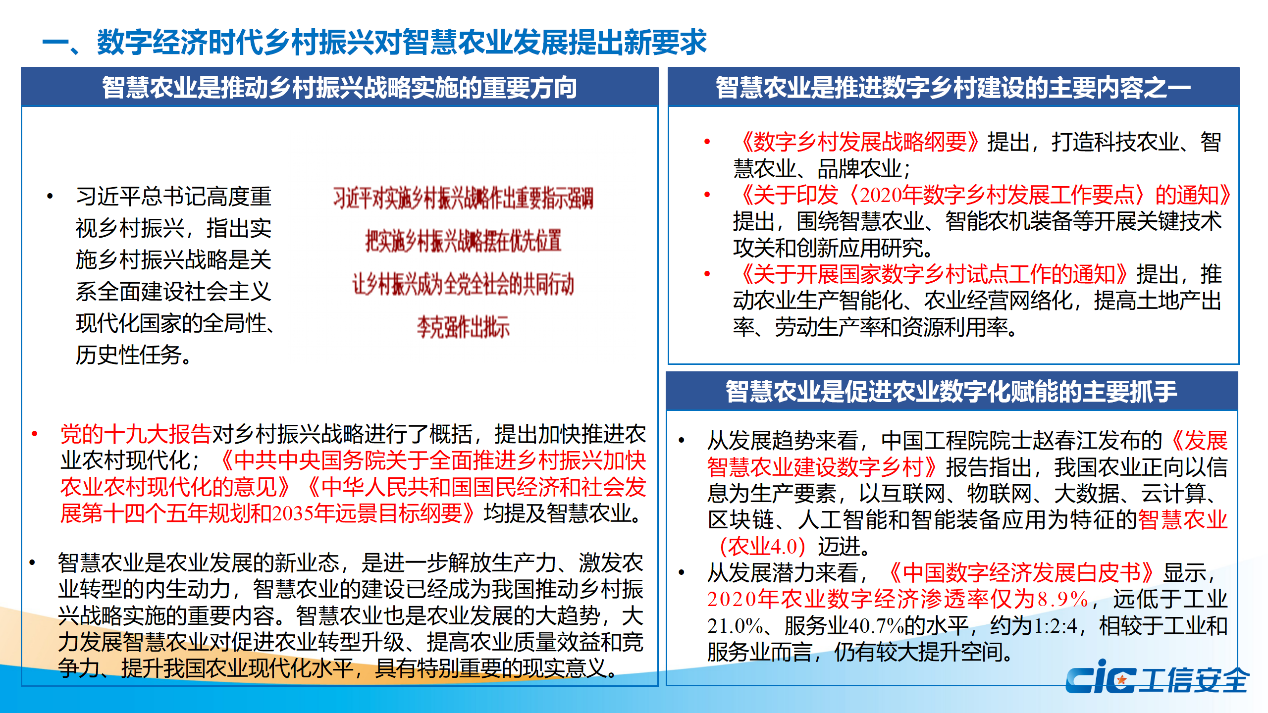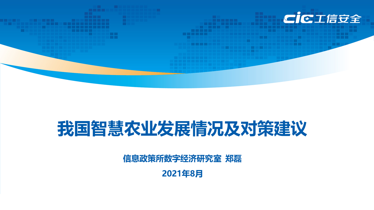 8月20日,第十六場“工信安全智庫”系列報告在線發(fā)布活動——“數(shù)字經(jīng)濟(jì)專題”成功舉辦。信息政策所數(shù)字經(jīng)濟(jì)研究室副主任鄭磊發(fā)布了《我國智慧農(nóng)業(yè)發(fā)展情況及對策建議》洞察報告。